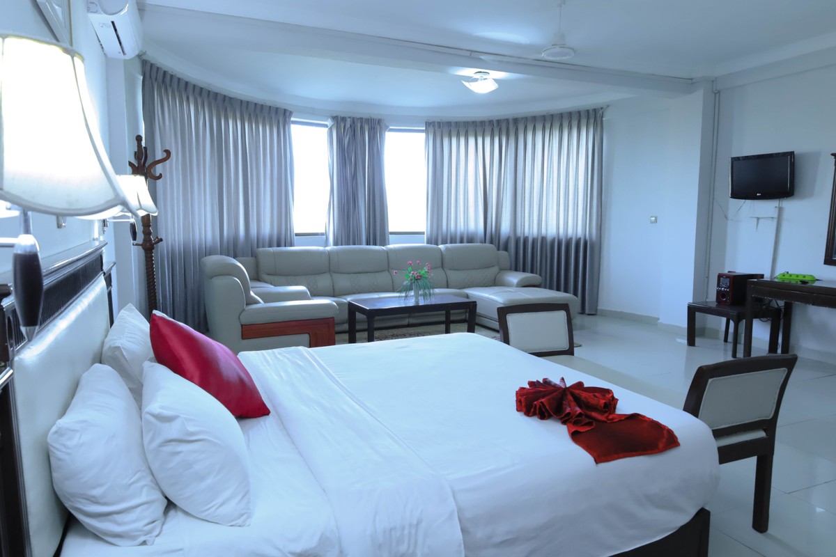 The Luxury Room at Samrat Hotel in Dire Dawa offers an expansive space of 35 to 40 square meters, featuring a king-size bed suitable for one or two guests. Amenities include individually controlled air conditioning, a study desk, a full sofa set, high-speed Wi-Fi access, a multi-channel television system, an individually controlled music system, and in-room hot drink facilities. Guests can also enjoy 24-hour room service, and non-smoking rooms are available upon request. Check-in time is from 12:00 PM, and check-out is until 10:00 AM.